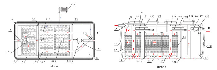 Quá trình bơm hồi lưu nước sau xử lý vầ ngăn 01 nhằm đẩy nước từ ngăn 01 sang ngăn 02.