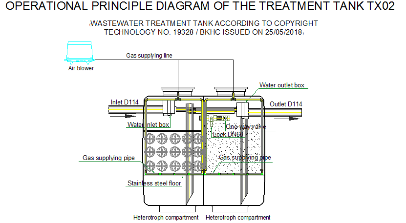 • Công suất và kích thước của bể xử lý nước thải được thay đổi tùy vào nhu cầu thực tế của địa điểm lắp đặt;
